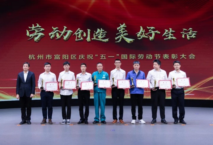2022年4月29日,杭州市富陽區慶?!拔逡弧眹H勞動節表彰大會在召開,公司徐崇玉研發團隊榮獲2021年度富陽區職工“突出貢獻獎”。