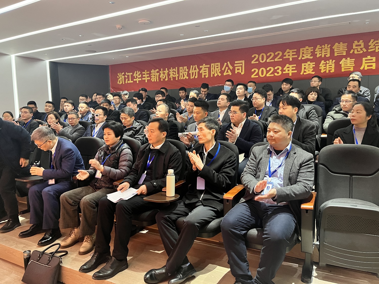 2月3日至4日,華豐新材2022年度銷售總結表彰暨2023年度銷售啟動大會在公司順利召開。公司董事會、高層領導及全體營銷團隊成員參加了此次會議。會議在新投入的位于杭州市西湖區之江長九中心的公司寫字樓會議室召開,新環境,新征程,我們在慷慨激昂的國歌聲中拉開序幕。會上,公司營銷中心及銷售各部領導分別向大會全員匯報了上年度工作開展情況以及新一年的工作計劃。公司董事長葉志群先生在大會上對營銷中心工作提出了總結性的意見和指導,并明確了新一年工作開展的方向和重點以及公司未來五年的戰略目標。本次會議第二個環節是全體營銷